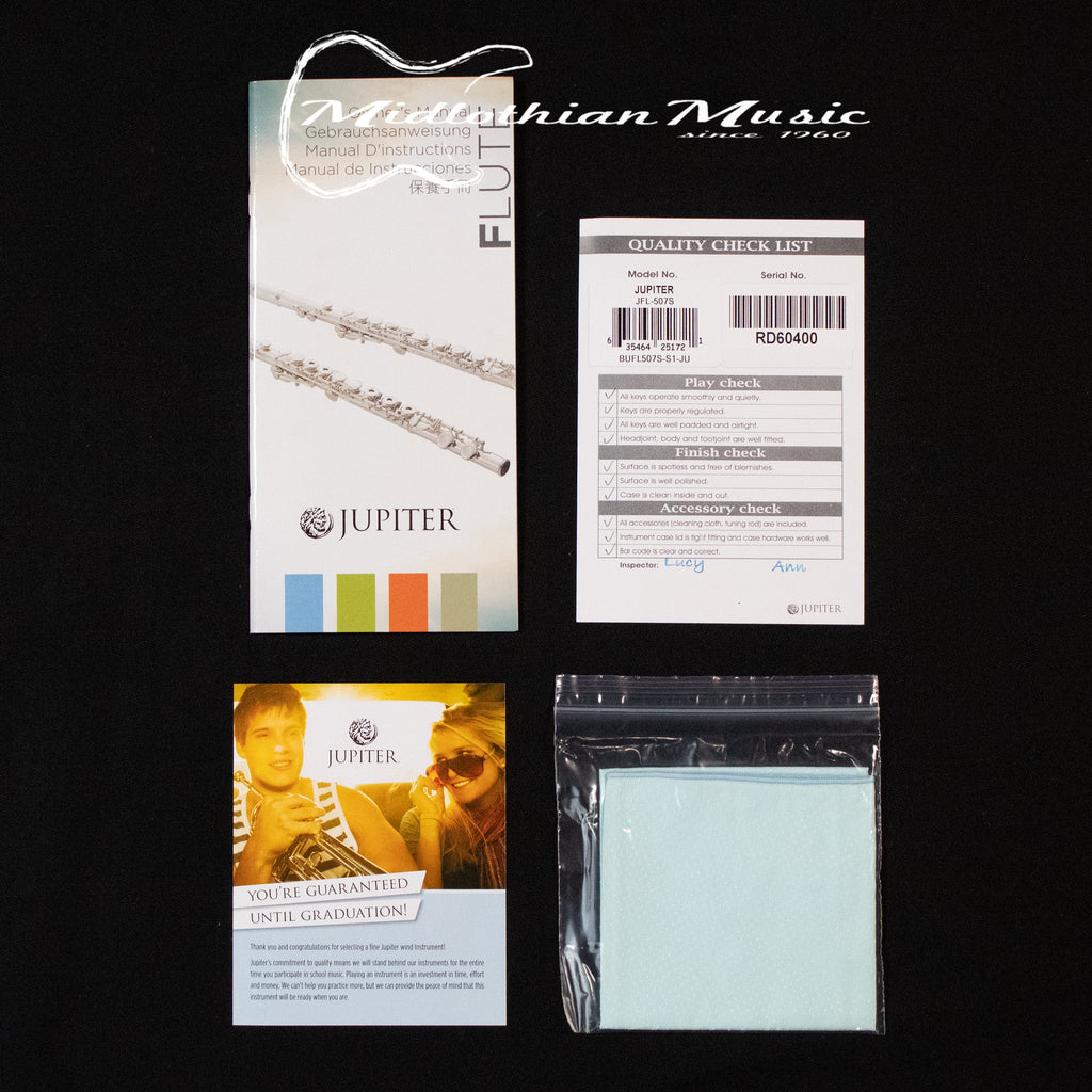 The Jupiter JFL-507S is an entry level flute that is made with quality parts and workmanship. The Jupiter brand is on most school band lists and is a reliable instrument.