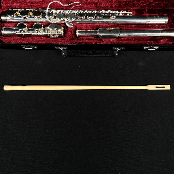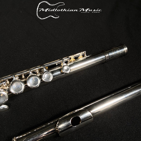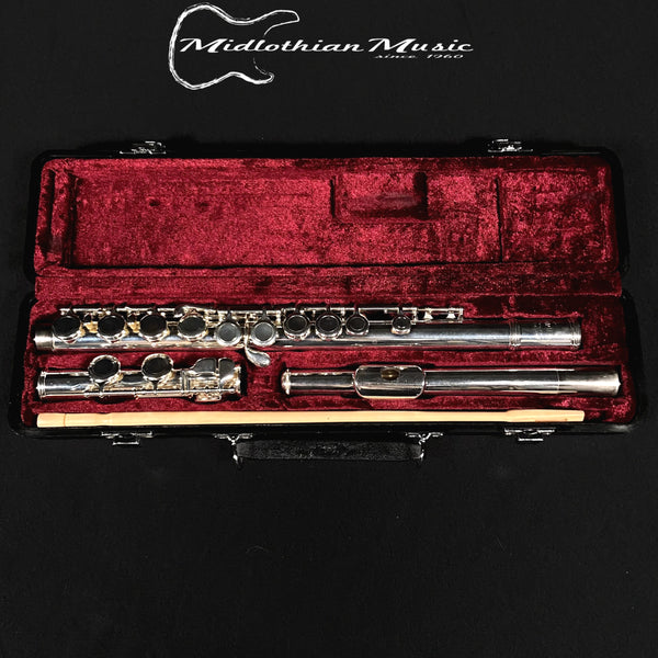 This Yamaha Flute has been disassembled, cleaned and serviced by one of Midlothian Music's expert band instrument technicians. We have been a band instrument dealer and servicer for over 64 years as a family owned business. We clean and adjust every horn and play test with our mouth piece. This instrument has been soaked and sanitized and then oiled and greased. All pads and corks have been inspected and replaced if needed. Lastly the mouthpiece was soaked, sanitized to be free of germs and head joint cork adjusted. This instrument will be safe for anyone to play safely. Fully adjusted to play with a light touch. Feel comfortable purchasing, this flute plays perfectly and sounds great!