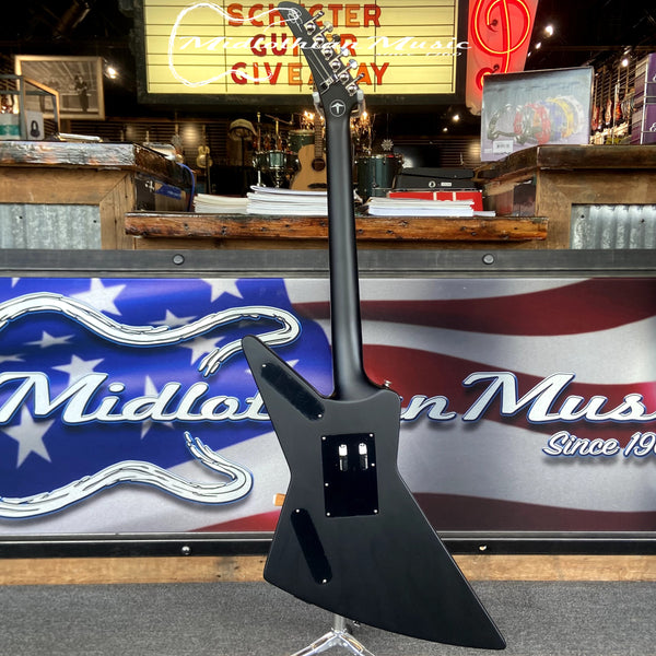 It features a modified Explorer body with a deep cutaway, custom Galaktikon Burst gloss-finished figured maple top and matte Ebony finished back, sides, and neck. Stylish and super easy to play!