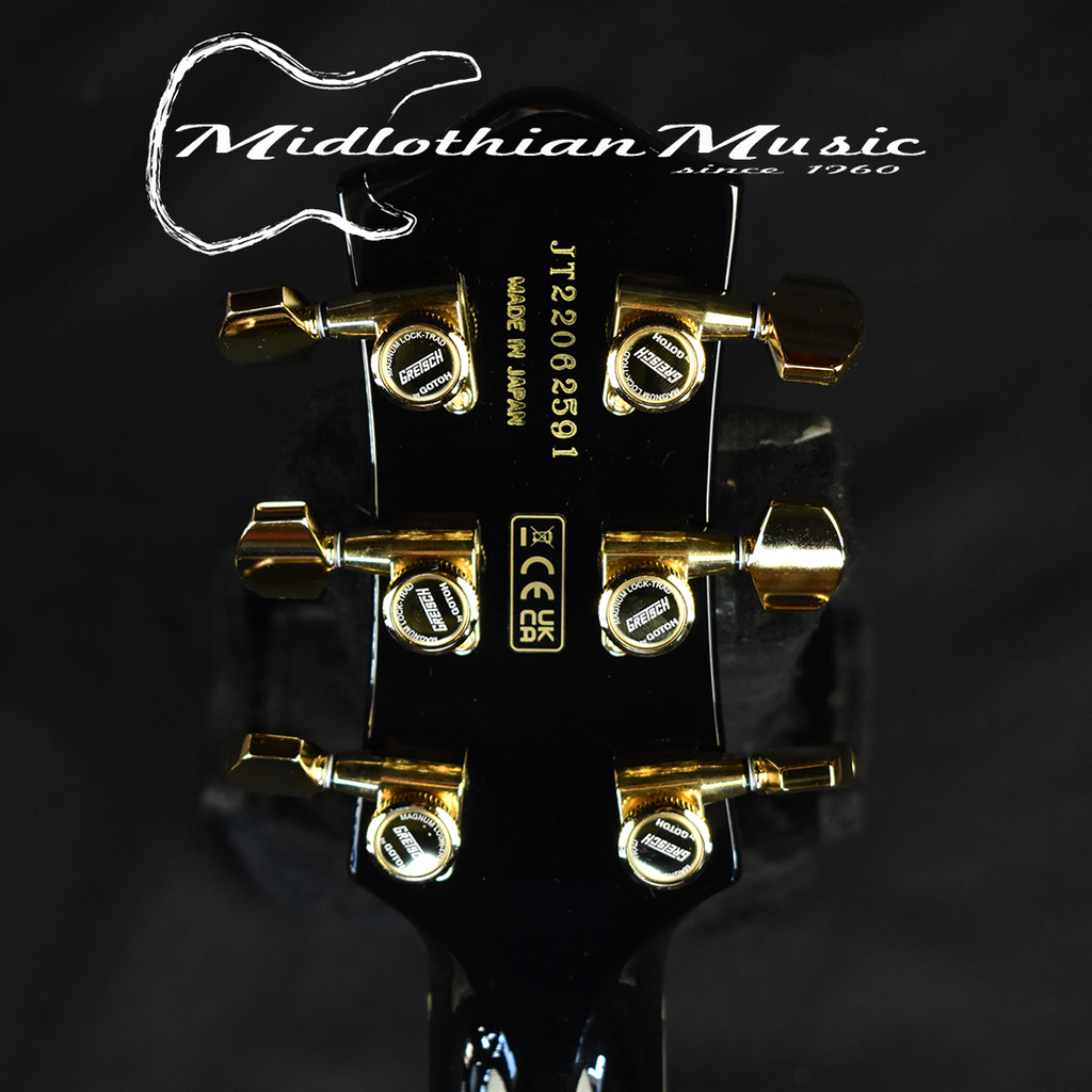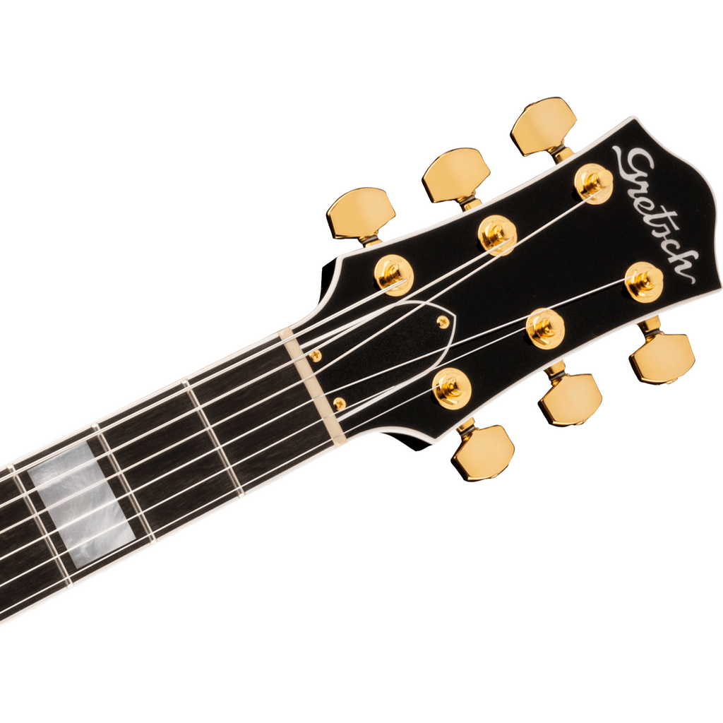 Features a select mahogany body with a maple top that produces strong, balanced mid-range, while the chambered body delivers a smooth attack and extended mid range that is remarkably wide and harmonically rich. You get a pair of Gretsch Broad'Tron BT65 pickups. The BT65 captures the guitar's sonic palette and reproduces powerful mids, extended lows and an exceptionally clear, yet smooth high end. Expect tons of power and full-spectrum clarity that delivers unparalleled overdrive and shimmering cleans!