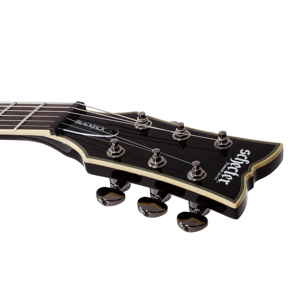 Like all Schecter guitars, the Blackjack has the same streamlined design and premium features that you'd expect. The Solo-II Blackjack has a resonant mahogany body cut to a classic shape with a stunning black gloss finish complemented by a cream binding. Looks stealthy, aggressive and stunning!