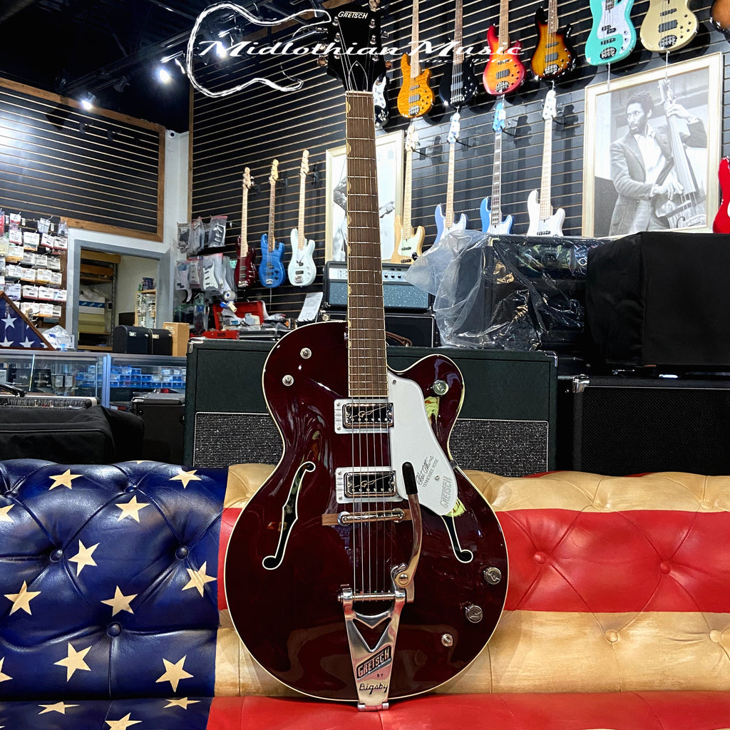 Midlothian Music values the importance of quality in craftsmanship, which is one of the many reasons why we are proud to be an Authorized Gretsch Dealer.Gretsch G6119T-62 Vintage Select Edition - '62 Tennessee Rose - Hollow Body w/Bigsby & Case - Deep Cherry Stain Finish
