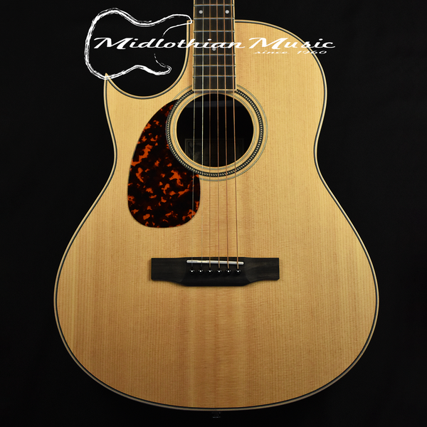 The C-03R-TE LH is Tommy Emmanuel's left handed signature Larrivée model, and it is a masterpiece. The Florentine cutaway allows for more treble than a Venetian cutaway and thanks to its deeper cut, you get more access to the upper frets.